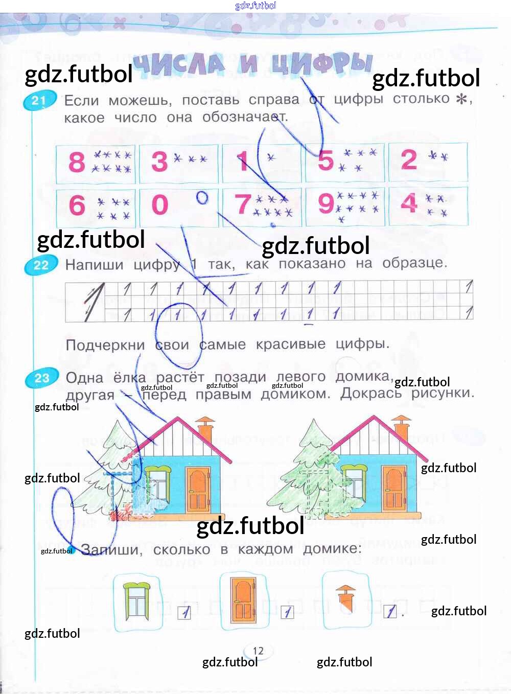 Готовые домашние задания по Математике за 1 класс Бененсон Рабочая тетрадь 2015 ФГОС - Часть 1. Страницы 12