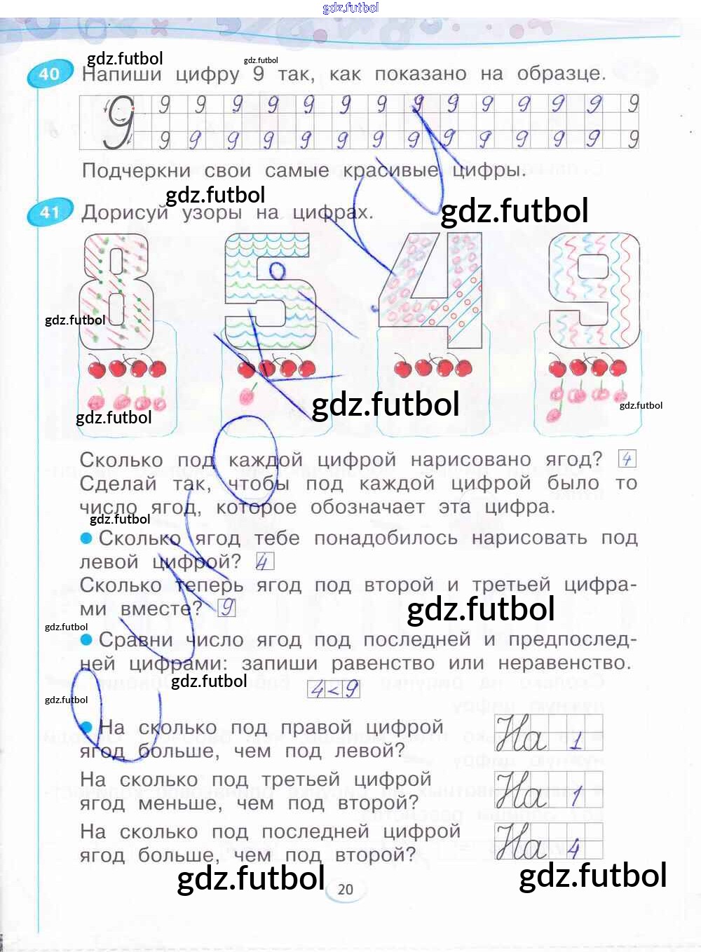 Готовые домашние задания по Математике за 1 класс Бененсон Рабочая тетрадь 2015 ФГОС - Часть 1. Страницы 20