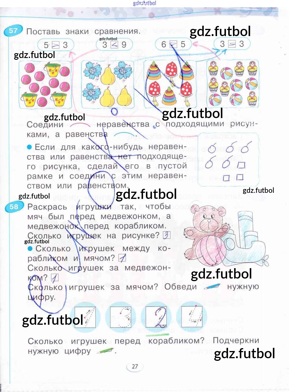 Готовые домашние задания по Математике за 1 класс Бененсон Рабочая тетрадь 2015 ФГОС - Часть 1. Страницы 27