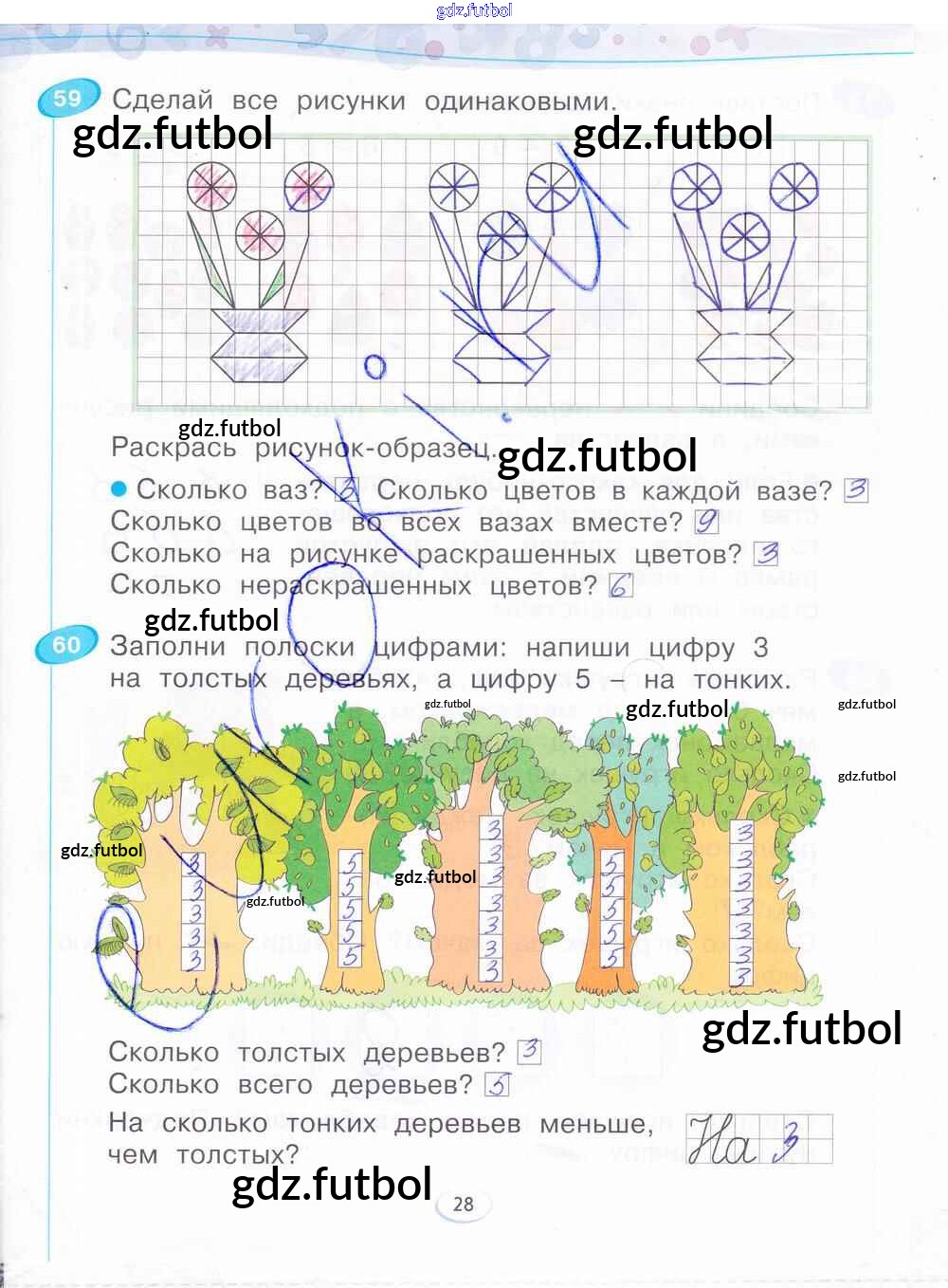Готовые домашние задания по Математике за 1 класс Бененсон Рабочая тетрадь 2015 ФГОС - Часть 1. Страницы 28