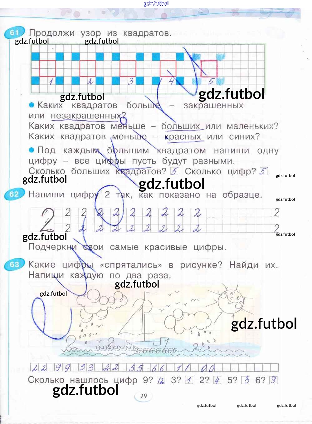 Готовые домашние задания по Математике за 1 класс Бененсон Рабочая тетрадь 2015 ФГОС - Часть 1. Страницы 29