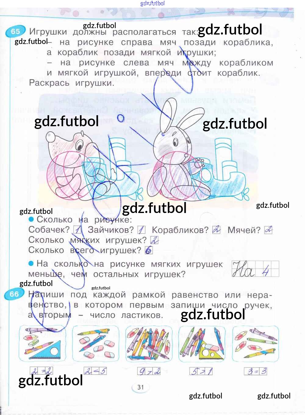 Готовые домашние задания по Математике за 1 класс Бененсон Рабочая тетрадь 2015 ФГОС - Часть 1. Страницы 31