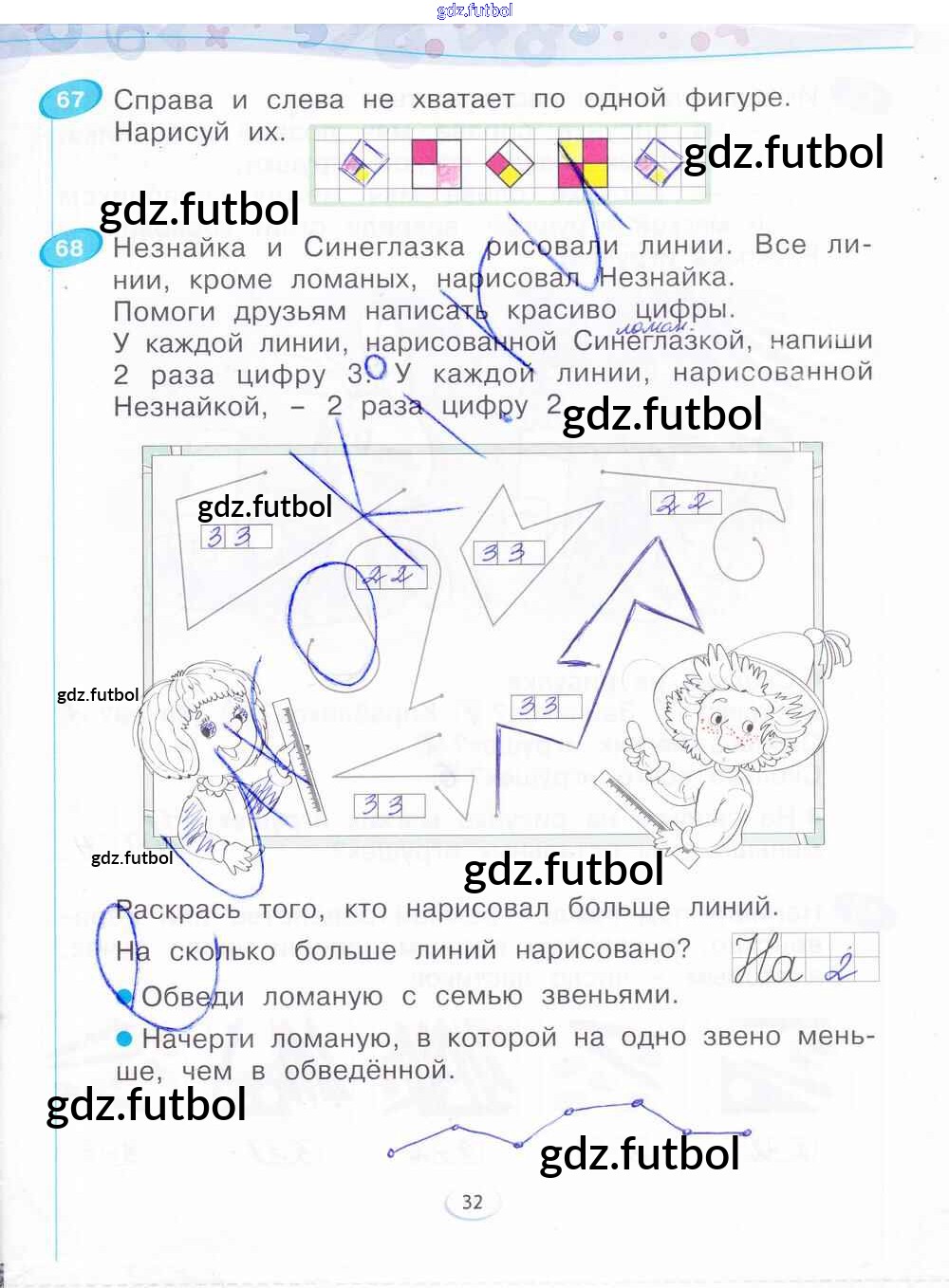 Готовые домашние задания по Математике за 1 класс Бененсон Рабочая тетрадь 2015 ФГОС - Часть 1. Страницы 32