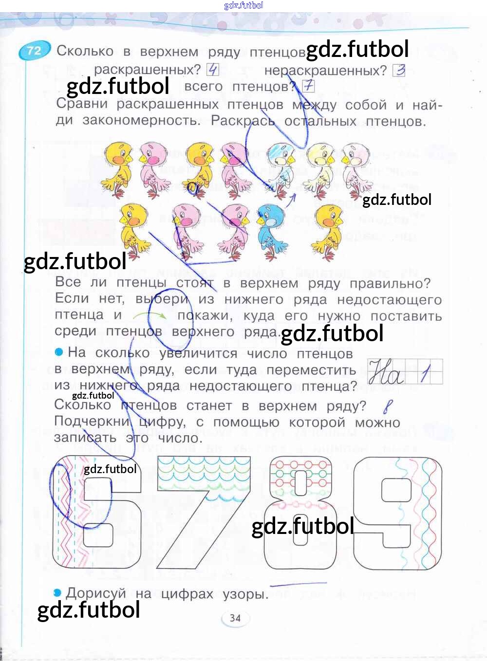 Готовые домашние задания по Математике за 1 класс Бененсон Рабочая тетрадь 2015 ФГОС - Часть 1. Страницы 34