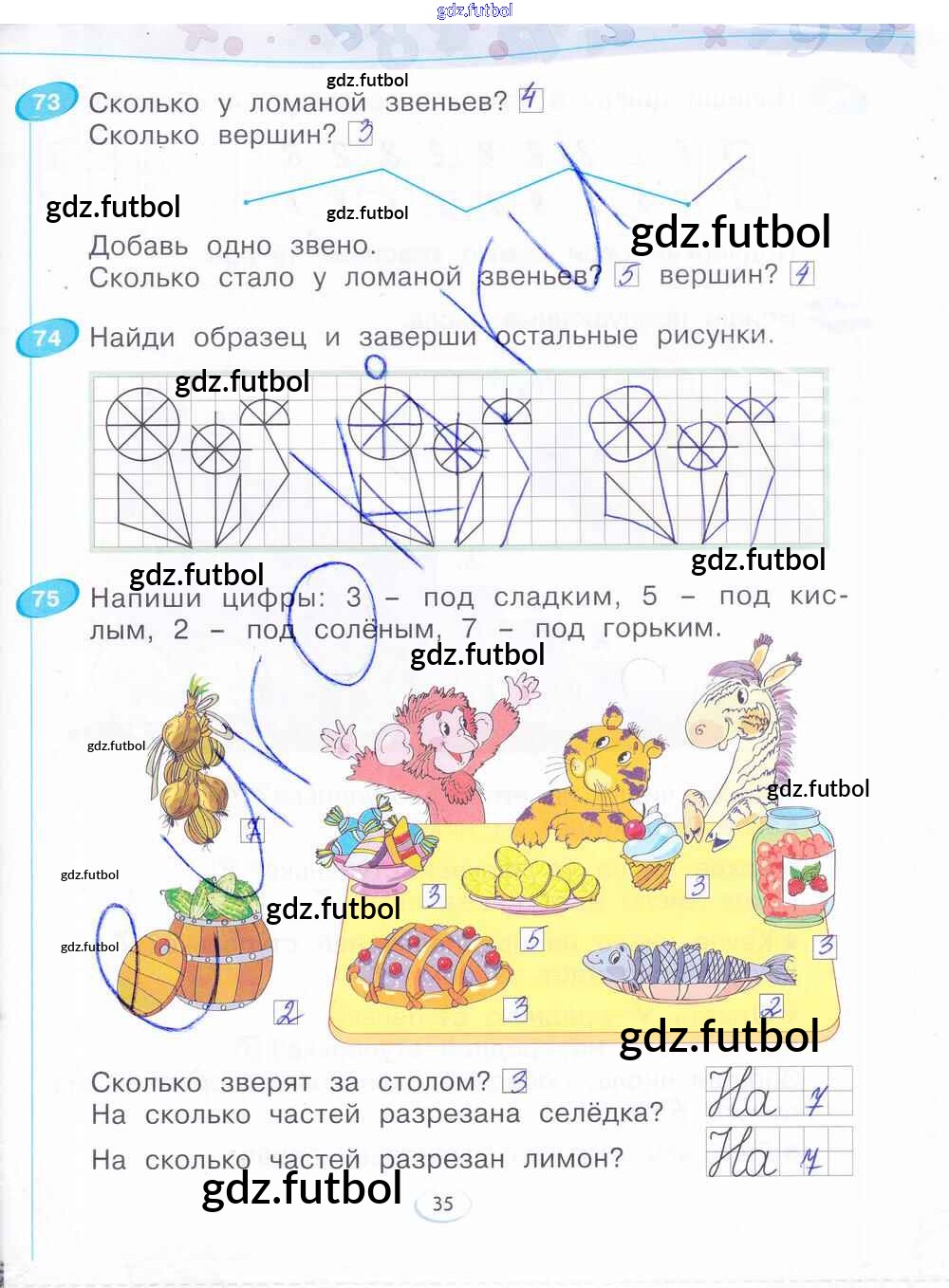 Готовые домашние задания по Математике за 1 класс Бененсон Рабочая тетрадь 2015 ФГОС - Часть 1. Страницы 35