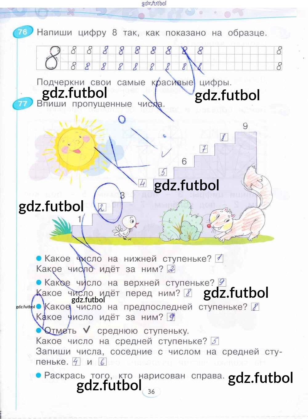 Готовые домашние задания по Математике за 1 класс Бененсон Рабочая тетрадь 2015 ФГОС - Часть 1. Страницы 36