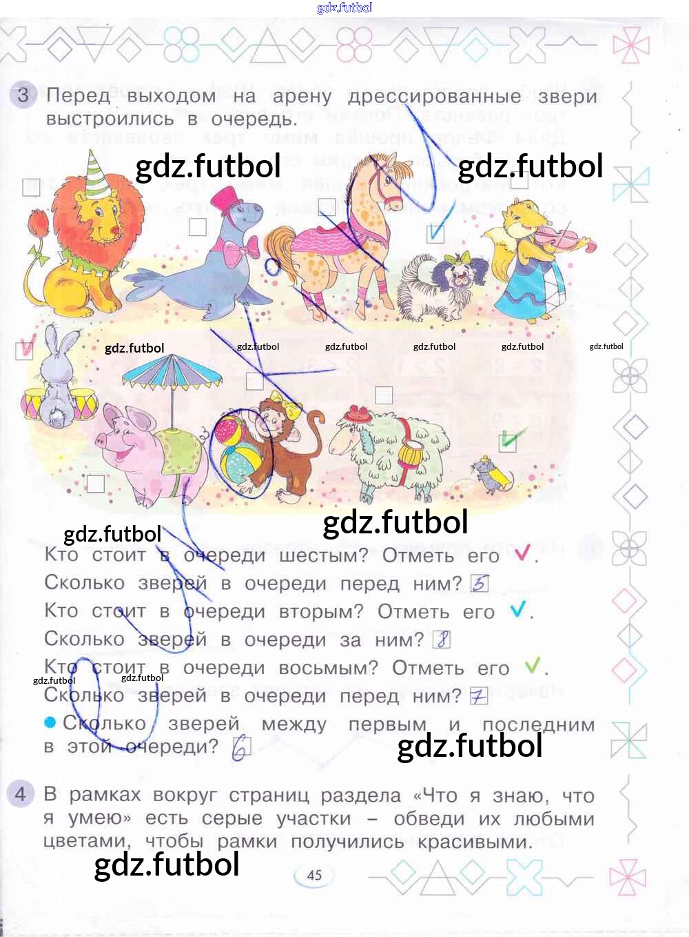 Готовые домашние задания по Математике за 1 класс Бененсон Рабочая тетрадь 2015 ФГОС - Часть 1. Страницы 45