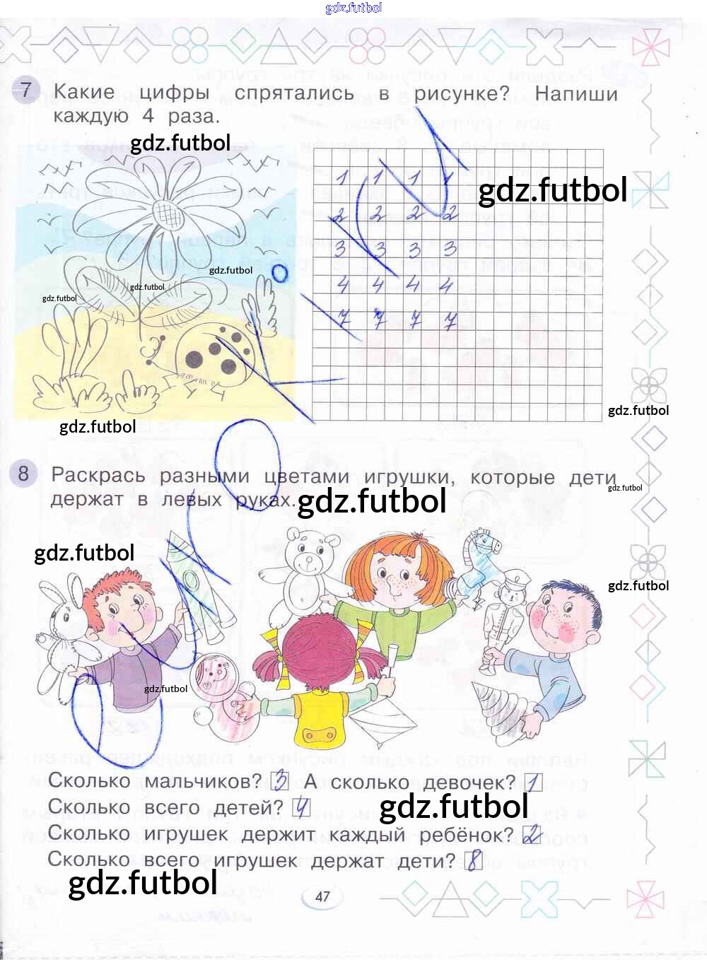 Готовые домашние задания по Математике за 1 класс Бененсон Рабочая тетрадь 2015 ФГОС - Часть 1. Страницы 47