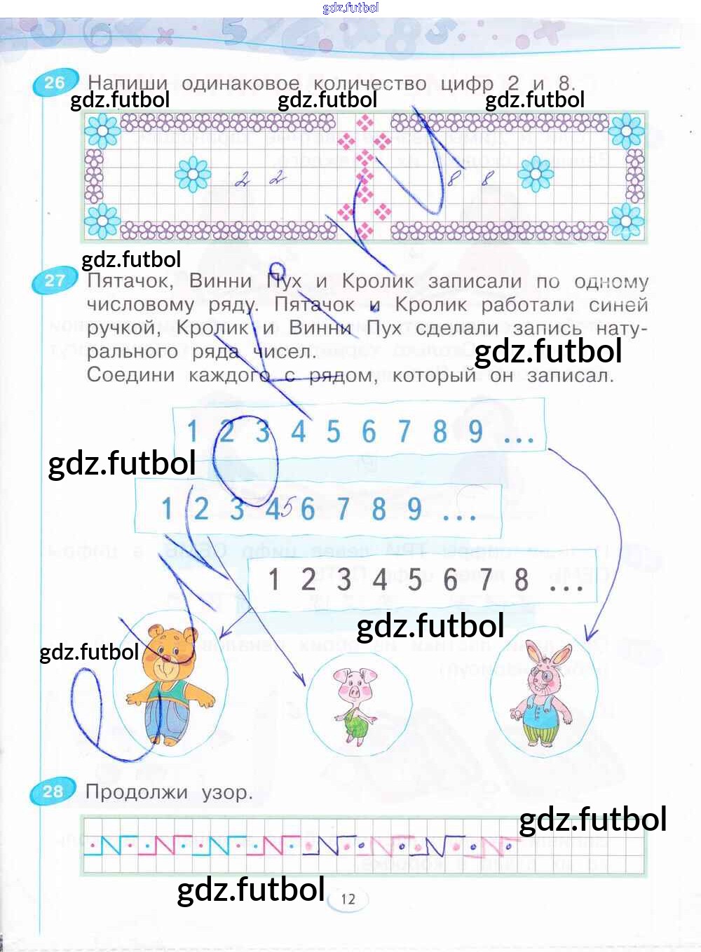 Готовые домашние задания по Математике за 1 класс Бененсон Рабочая тетрадь 2015 ФГОС - Часть 2. Страницы 12