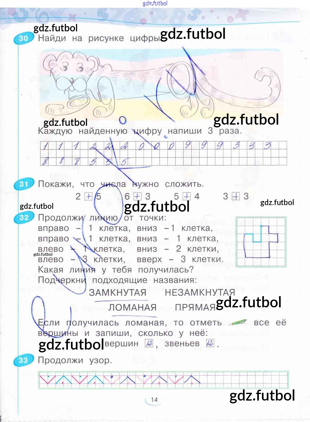 Готовые домашние задания по Математике за 1 класс Бененсон Рабочая тетрадь 2015 ФГОС - Часть 2. Страницы 14