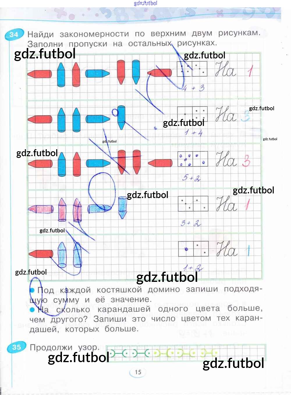 Готовые домашние задания по Математике за 1 класс Бененсон Рабочая тетрадь 2015 ФГОС - Часть 2. Страницы 15