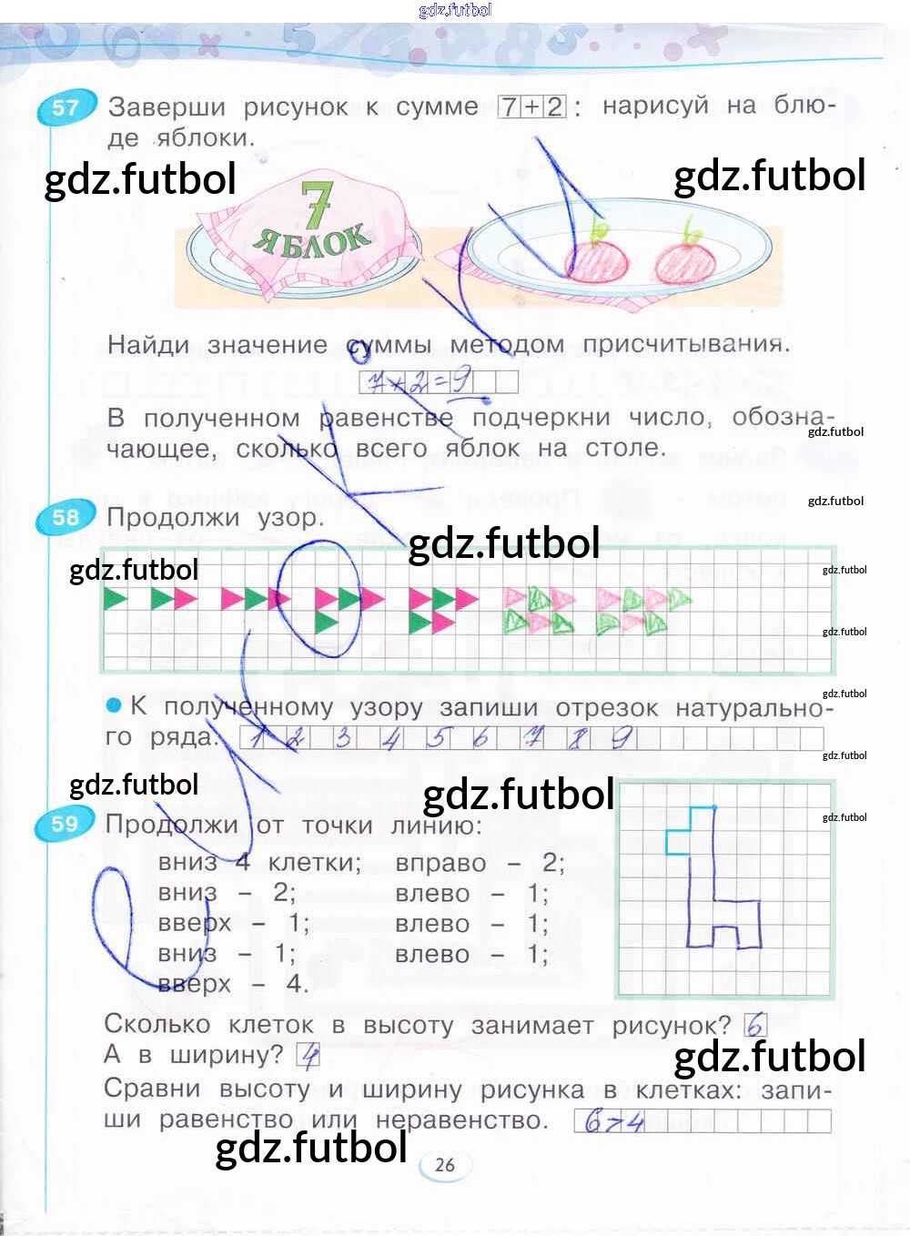 Готовые домашние задания по Математике за 1 класс Бененсон Рабочая тетрадь 2015 ФГОС - Часть 2. Страницы 26