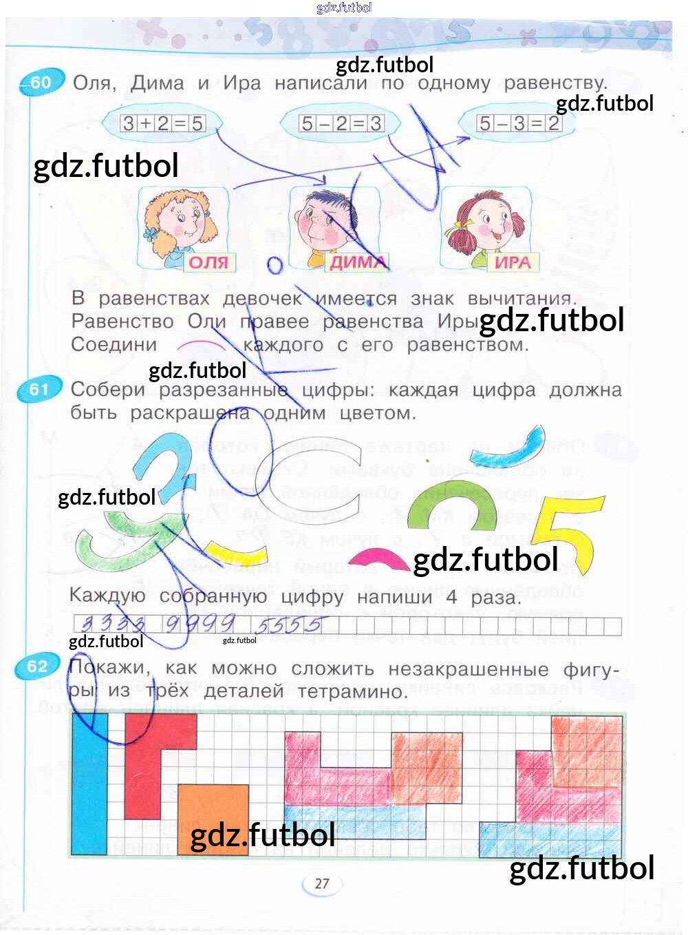 Готовые домашние задания по Математике за 1 класс Бененсон Рабочая тетрадь 2015 ФГОС - Часть 2. Страницы 27