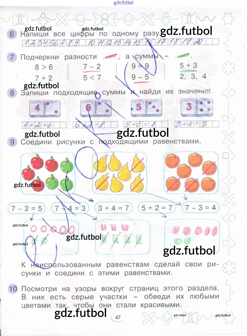Готовые домашние задания по Математике за 1 класс Бененсон Рабочая тетрадь 2015 ФГОС - Часть 2. Страницы 47