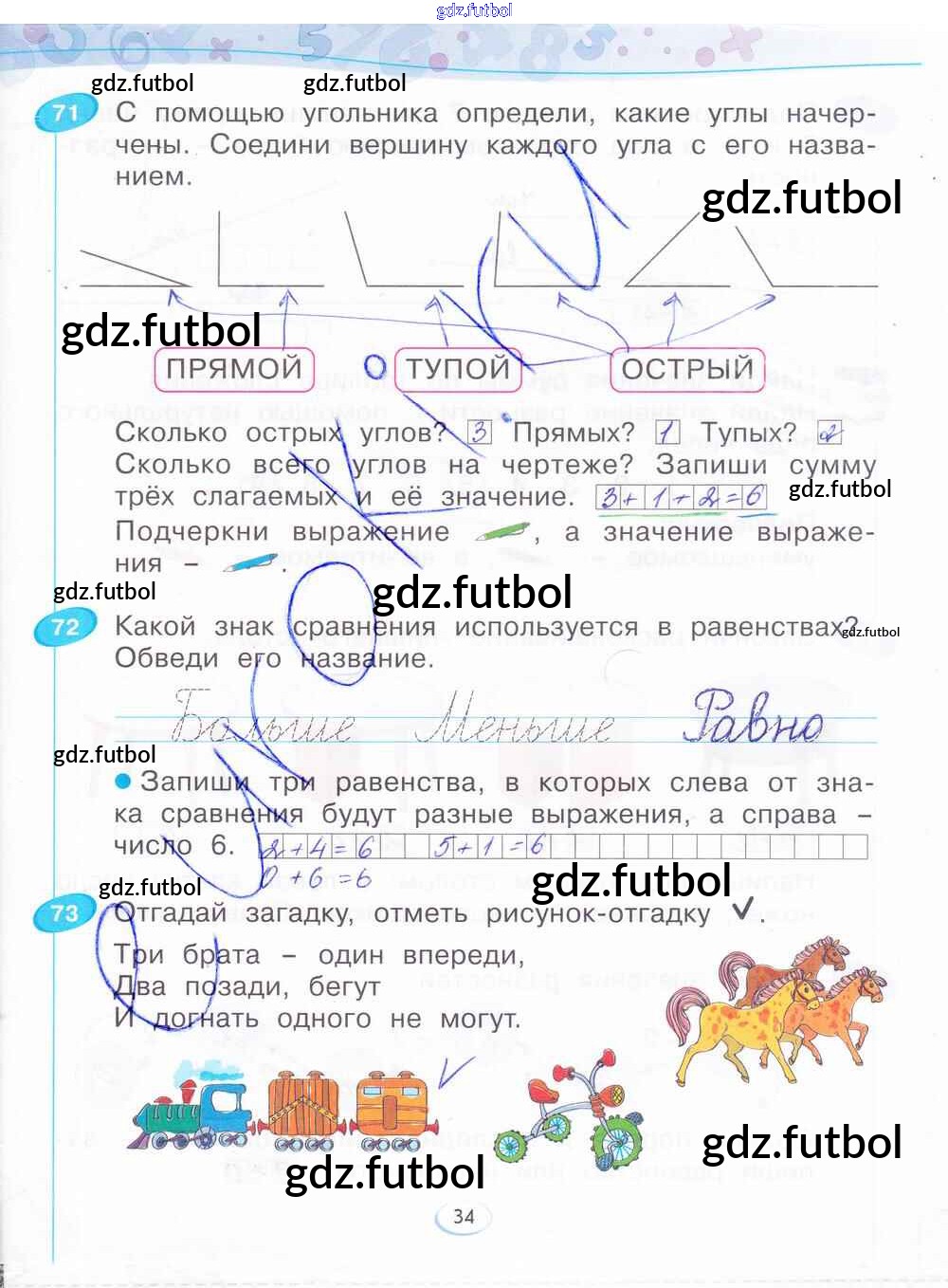 Готовые домашние задания по Математике за 1 класс Бененсон Рабочая тетрадь 2015 ФГОС - Часть 3. Страницы 34
