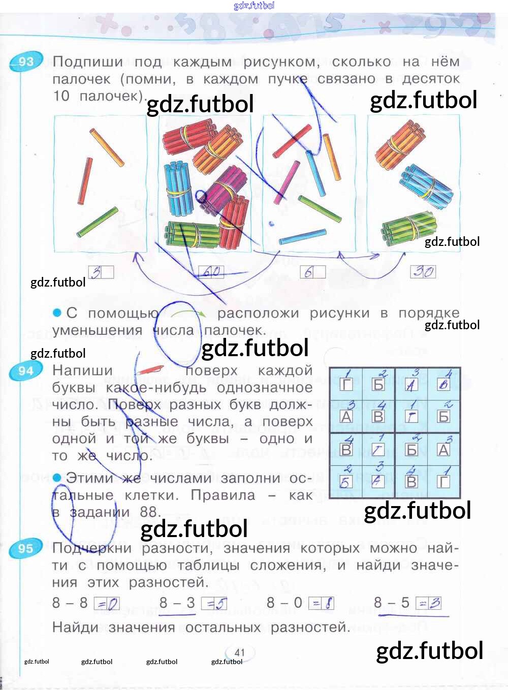 Готовые домашние задания по Математике за 1 класс Бененсон Рабочая тетрадь 2015 ФГОС - Часть 3. Страницы 41
