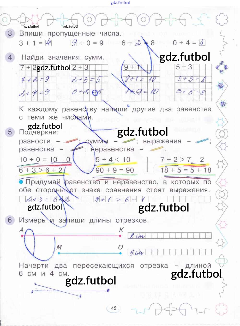 Готовые домашние задания по Математике за 1 класс Бененсон Рабочая тетрадь 2015 ФГОС - Часть 3. Страницы 45