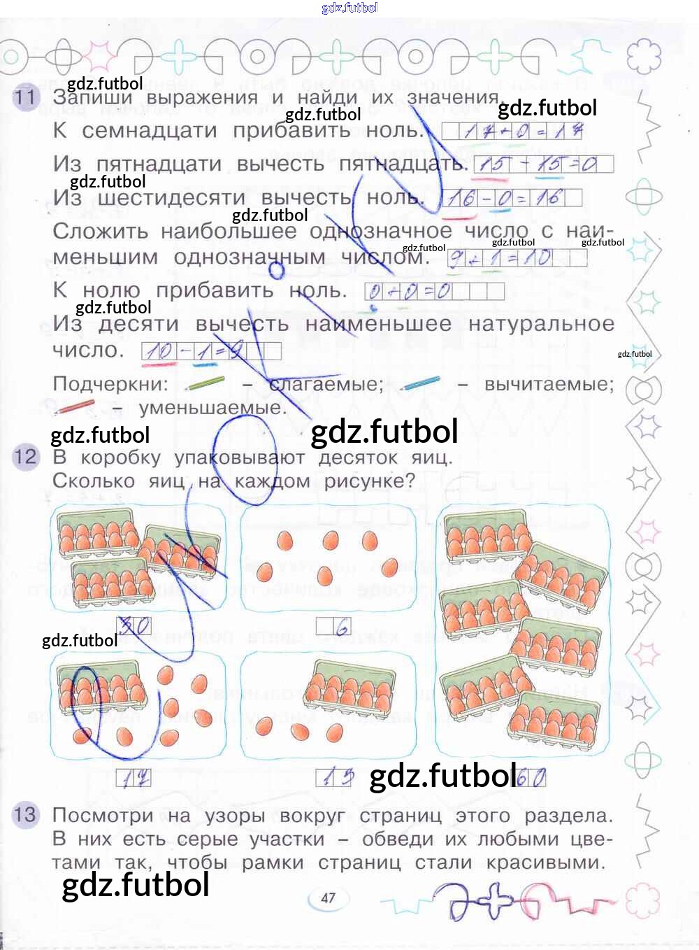Готовые домашние задания по Математике за 1 класс Бененсон Рабочая тетрадь 2015 ФГОС - Часть 3. Страницы 47
