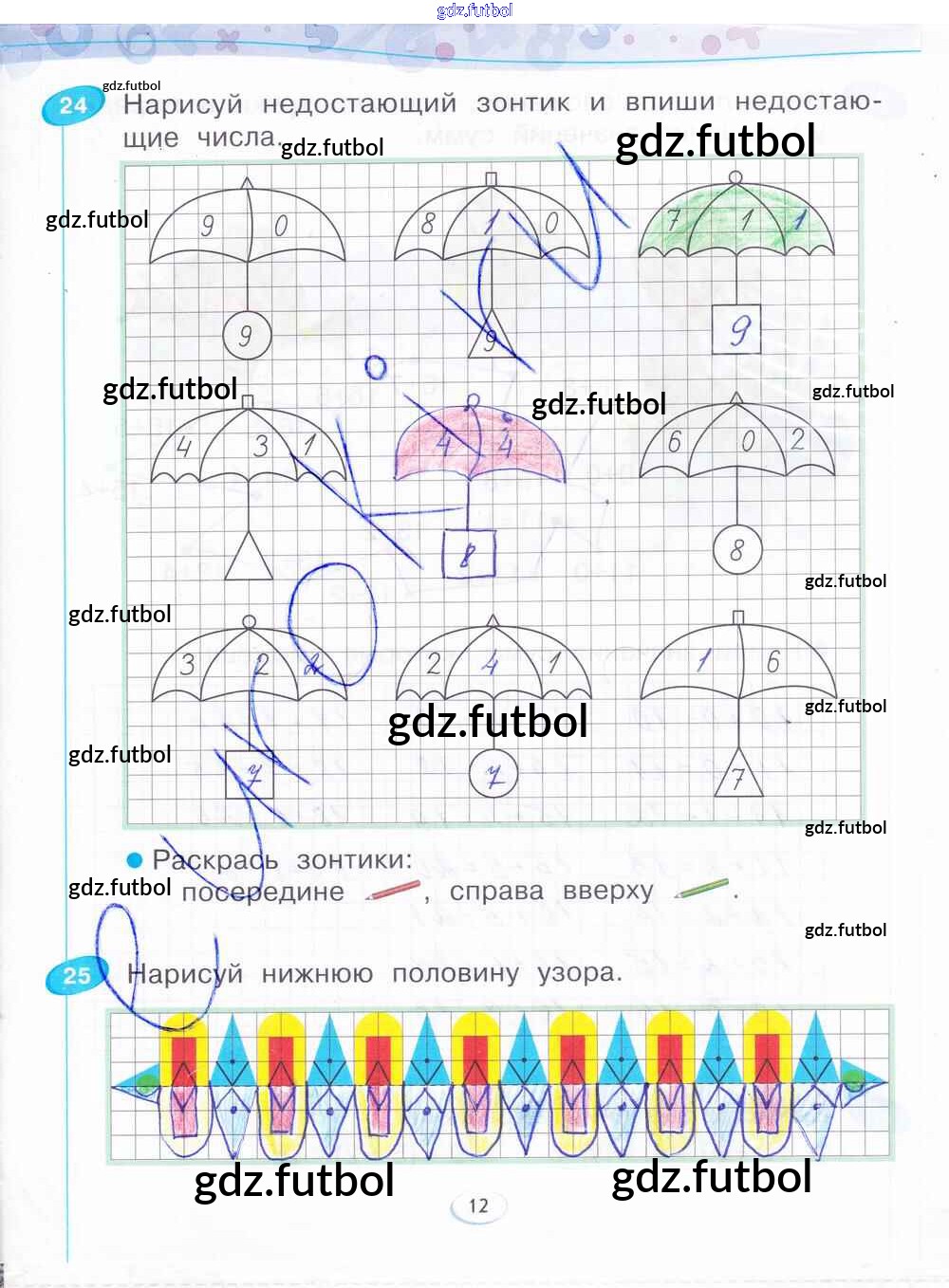 Готовые домашние задания по Математике за 1 класс Бененсон Рабочая тетрадь 2015 ФГОС - Часть 4. Страницы 12