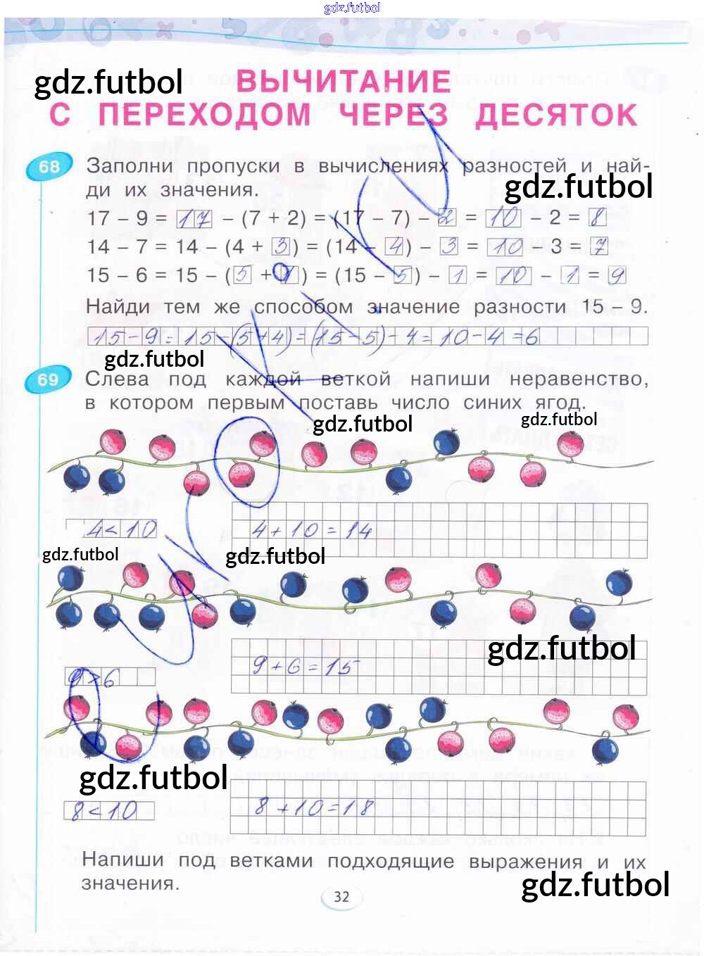 Готовые домашние задания по Математике за 1 класс Бененсон Рабочая тетрадь 2015 ФГОС - Часть 4. Страницы 32