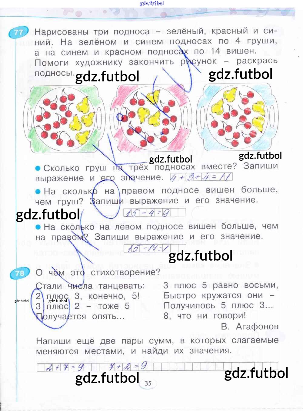 Готовые домашние задания по Математике за 1 класс Бененсон Рабочая тетрадь 2015 ФГОС - Часть 4. Страницы 35