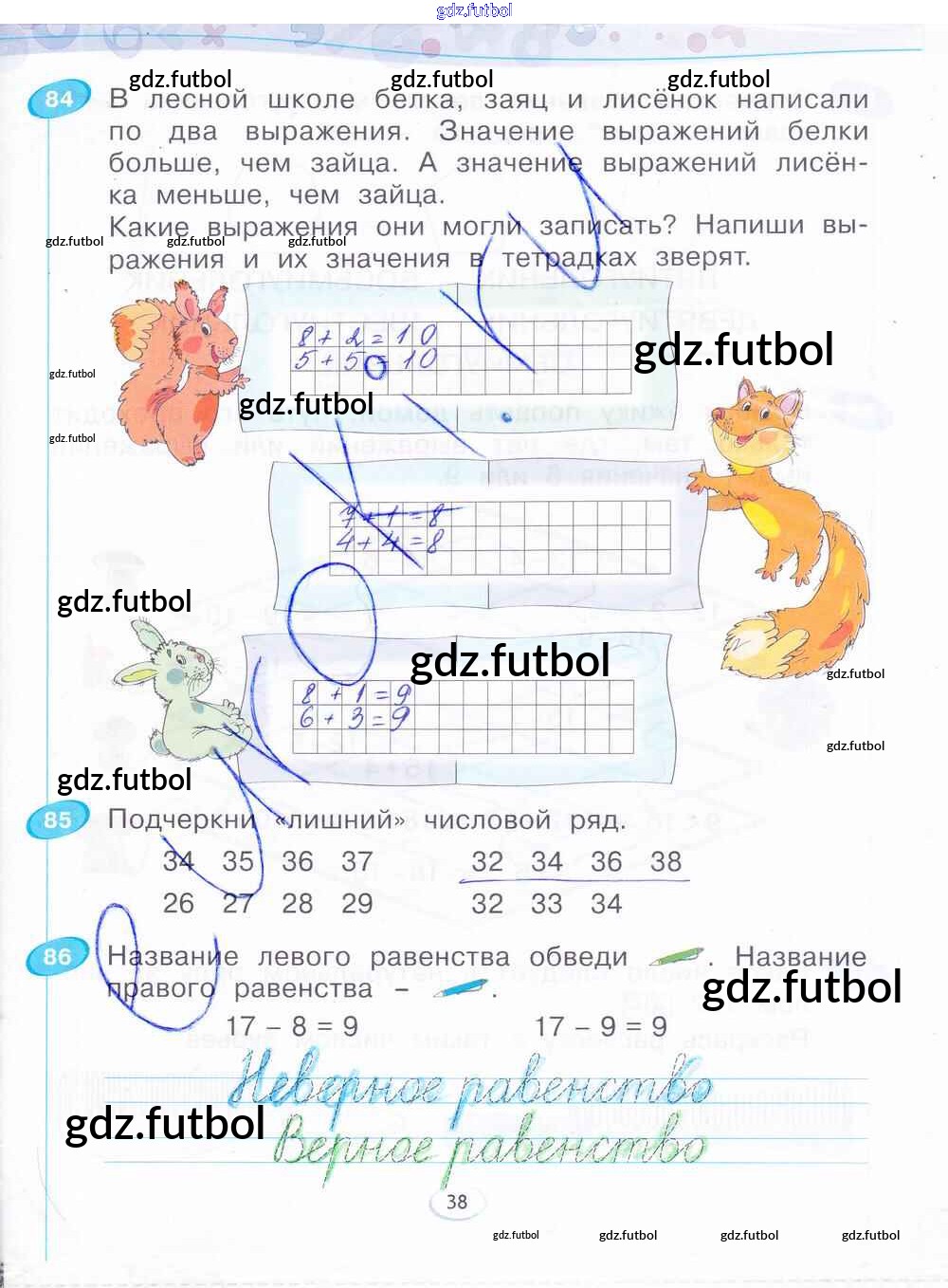 Готовые домашние задания по Математике за 1 класс Бененсон Рабочая тетрадь 2015 ФГОС - Часть 4. Страницы 38