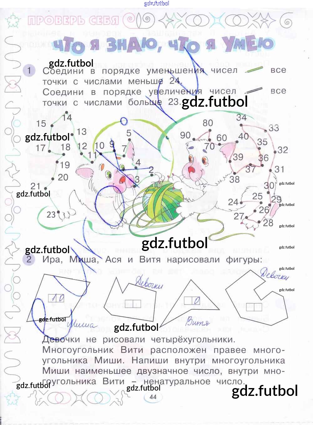 Готовые домашние задания по Математике за 1 класс Бененсон Рабочая тетрадь 2015 ФГОС - Часть 4. Страницы 44