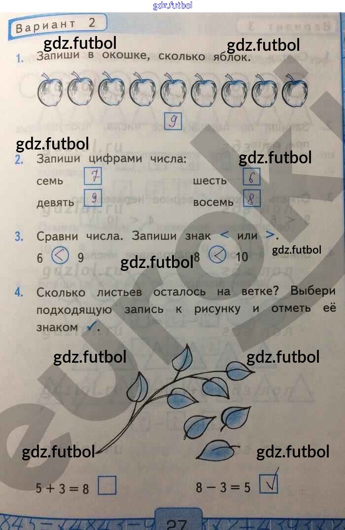 Готовые домашние задания по Математике за 1 класс Рудницкая Контрольные работы УМК 2014 ФГОС - Часть 1. Страницы 27