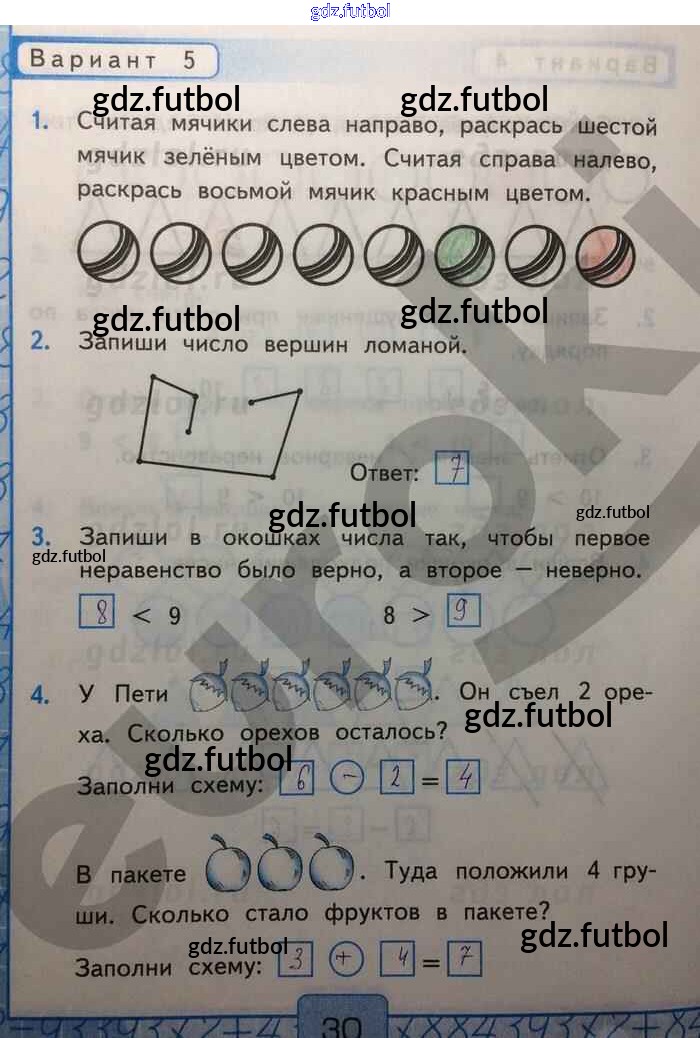 Готовые домашние задания по Математике за 1 класс Рудницкая Контрольные работы УМК 2014 ФГОС - Часть 1. Страницы 30