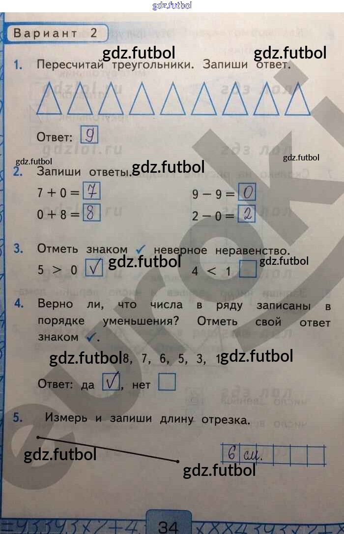 Готовые домашние задания по Математике за 1 класс Рудницкая Контрольные работы УМК 2014 ФГОС - Часть 1. Страницы 34