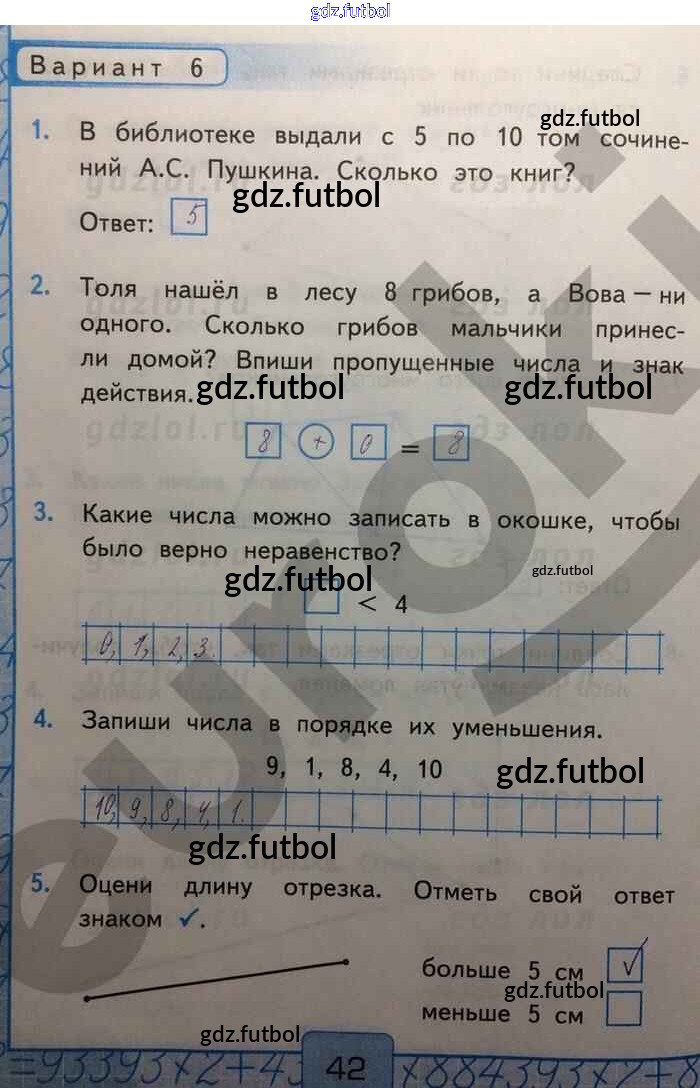 Готовые домашние задания по Математике за 1 класс Рудницкая Контрольные работы УМК 2014 ФГОС - Часть 1. Страницы 42