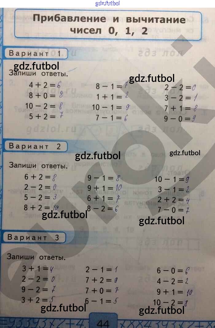 Готовые домашние задания по Математике за 1 класс Рудницкая Контрольные работы УМК 2014 ФГОС - Часть 1. Страницы 44