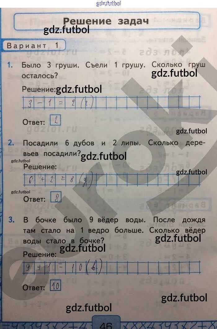 Готовые домашние задания по Математике за 1 класс Рудницкая Контрольные работы УМК 2014 ФГОС - Часть 1. Страницы 46