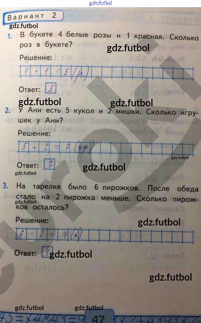 Готовые домашние задания по Математике за 1 класс Рудницкая Контрольные работы УМК 2014 ФГОС - Часть 1. Страницы 47
