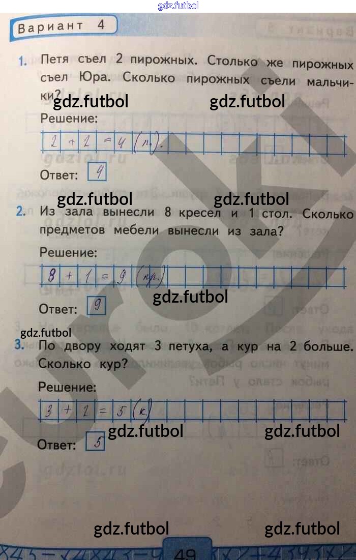 Готовые домашние задания по Математике за 1 класс Рудницкая Контрольные работы УМК 2014 ФГОС - Часть 1. Страницы 49