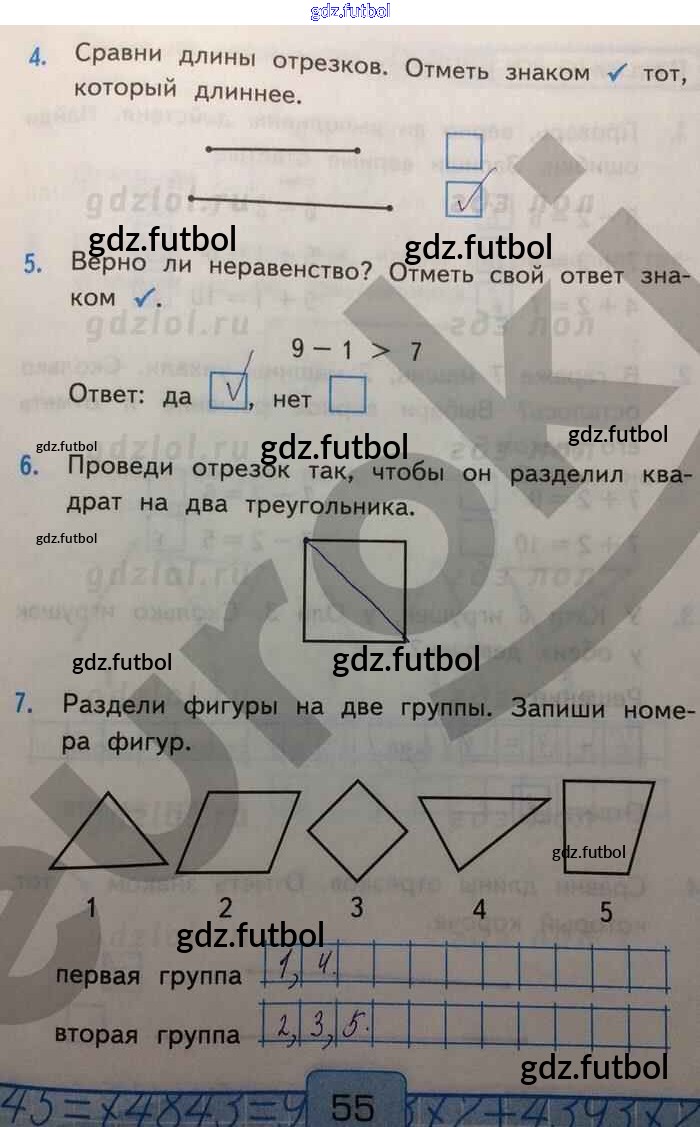 Готовые домашние задания по Математике за 1 класс Рудницкая Контрольные работы УМК 2014 ФГОС - Часть 1. Страницы 55