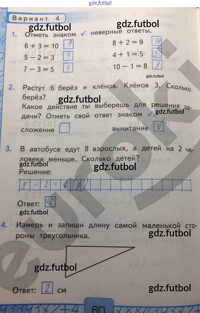 Готовые домашние задания по Математике за 1 класс Рудницкая Контрольные работы УМК 2014 ФГОС - Часть 1. Страницы 60
