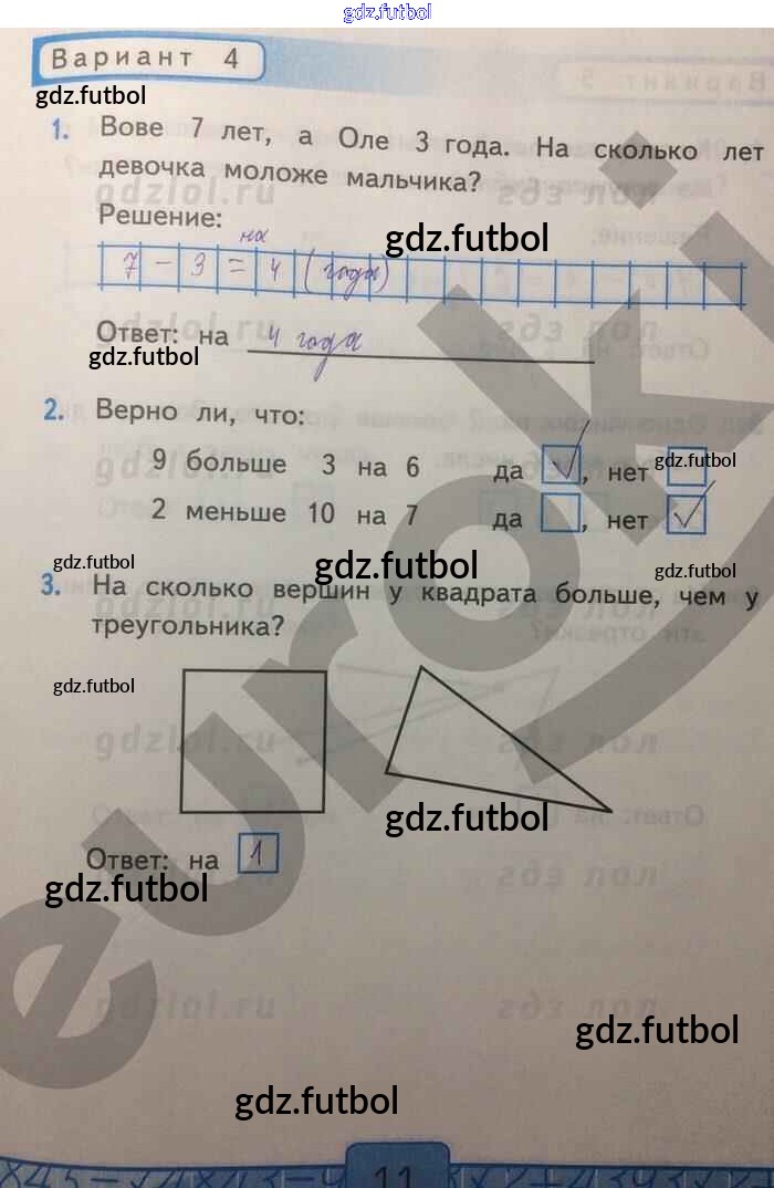 Готовые домашние задания по Математике за 1 класс Рудницкая Контрольные работы УМК 2014 ФГОС - Часть 2. Страницы 11