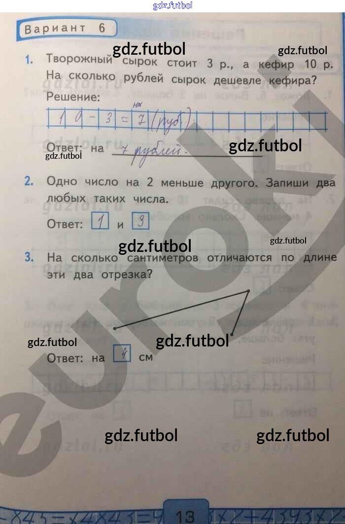 Готовые домашние задания по Математике за 1 класс Рудницкая Контрольные работы УМК 2014 ФГОС - Часть 2. Страницы 13
