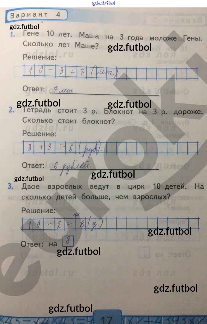 Готовые домашние задания по Математике за 1 класс Рудницкая Контрольные работы УМК 2014 ФГОС - Часть 2. Страницы 17