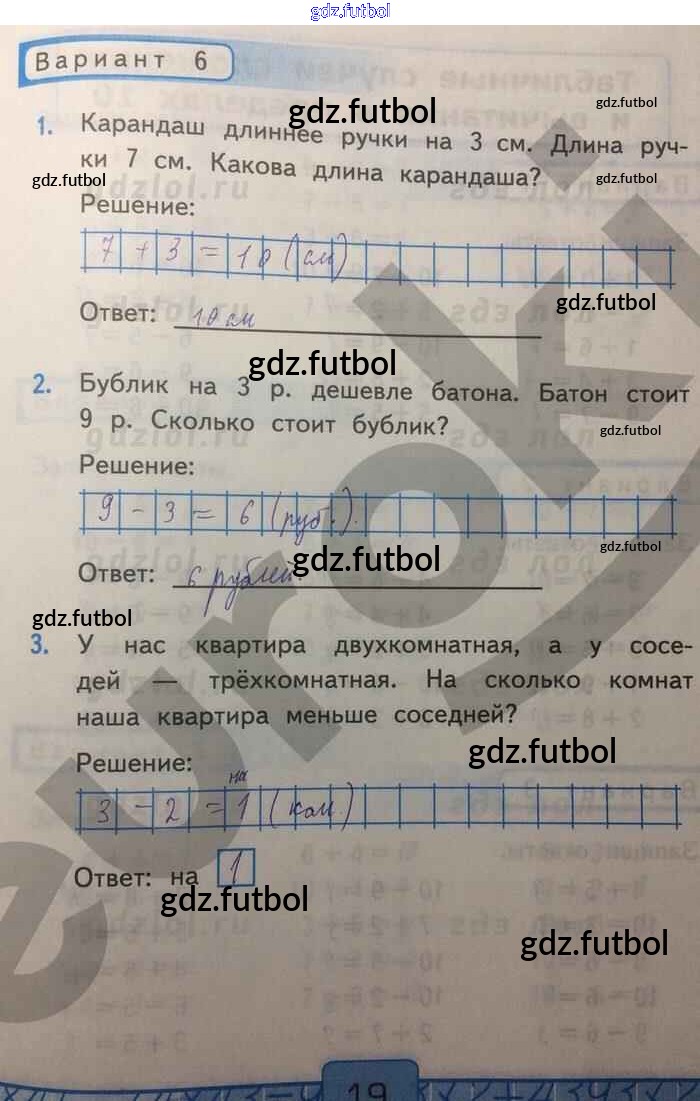 Готовые домашние задания по Математике за 1 класс Рудницкая Контрольные работы УМК 2014 ФГОС - Часть 2. Страницы 19