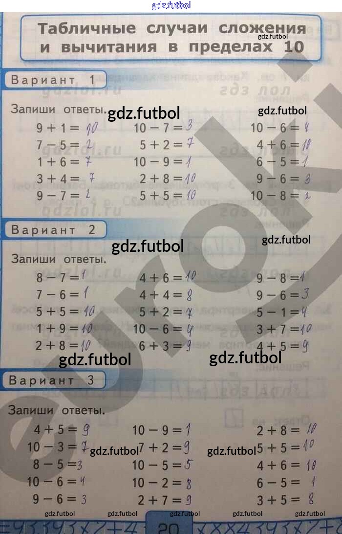 Готовые домашние задания по Математике за 1 класс Рудницкая Контрольные работы УМК 2014 ФГОС - Часть 2. Страницы 20