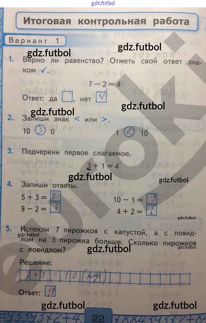 Готовые домашние задания по Математике за 1 класс Рудницкая Контрольные работы УМК 2014 ФГОС - Часть 2. Страницы 22