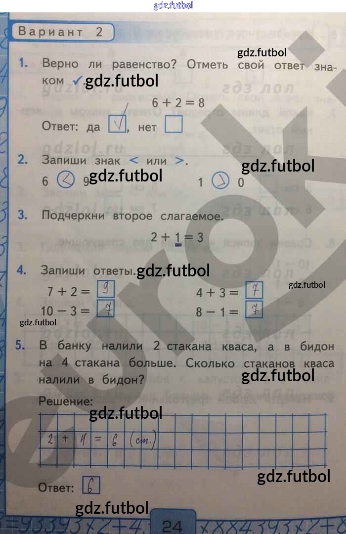 Готовые домашние задания по Математике за 1 класс Рудницкая Контрольные работы УМК 2014 ФГОС - Часть 2. Страницы 24
