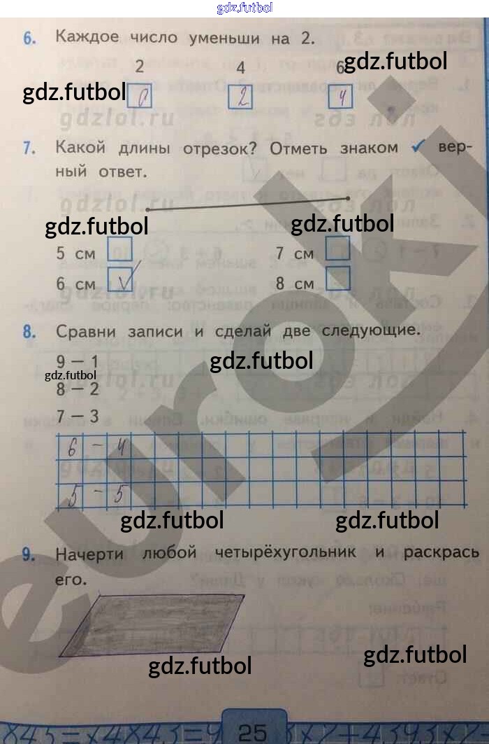 Готовые домашние задания по Математике за 1 класс Рудницкая Контрольные работы УМК 2014 ФГОС - Часть 2. Страницы 25