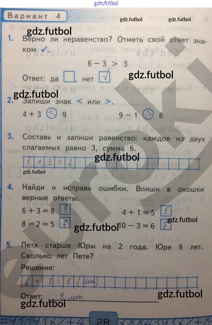 Готовые домашние задания по Математике за 1 класс Рудницкая Контрольные работы УМК 2014 ФГОС - Часть 2. Страницы 28