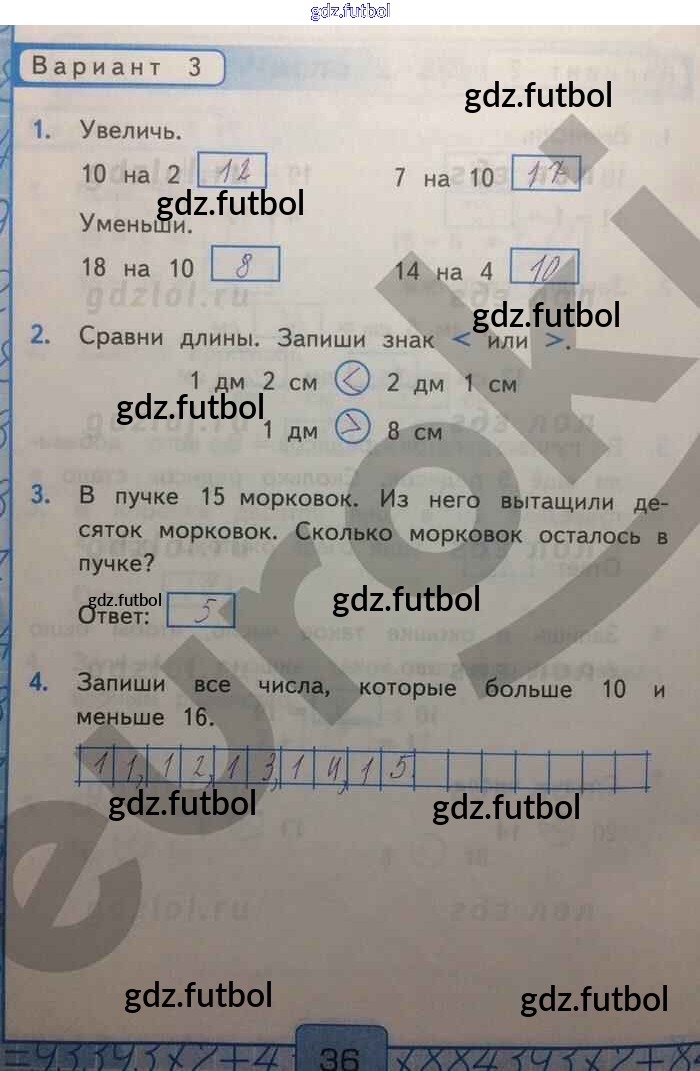 Готовые домашние задания по Математике за 1 класс Рудницкая Контрольные работы УМК 2014 ФГОС - Часть 2. Страницы 36