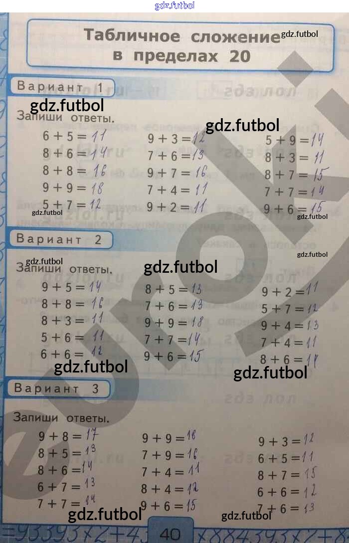 Готовые домашние задания по Математике за 1 класс Рудницкая Контрольные работы УМК 2014 ФГОС - Часть 2. Страницы 40