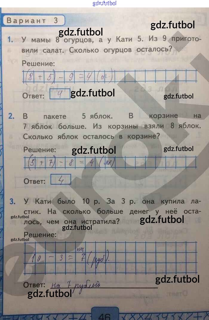 Готовые домашние задания по Математике за 1 класс Рудницкая Контрольные работы УМК 2014 ФГОС - Часть 2. Страницы 46