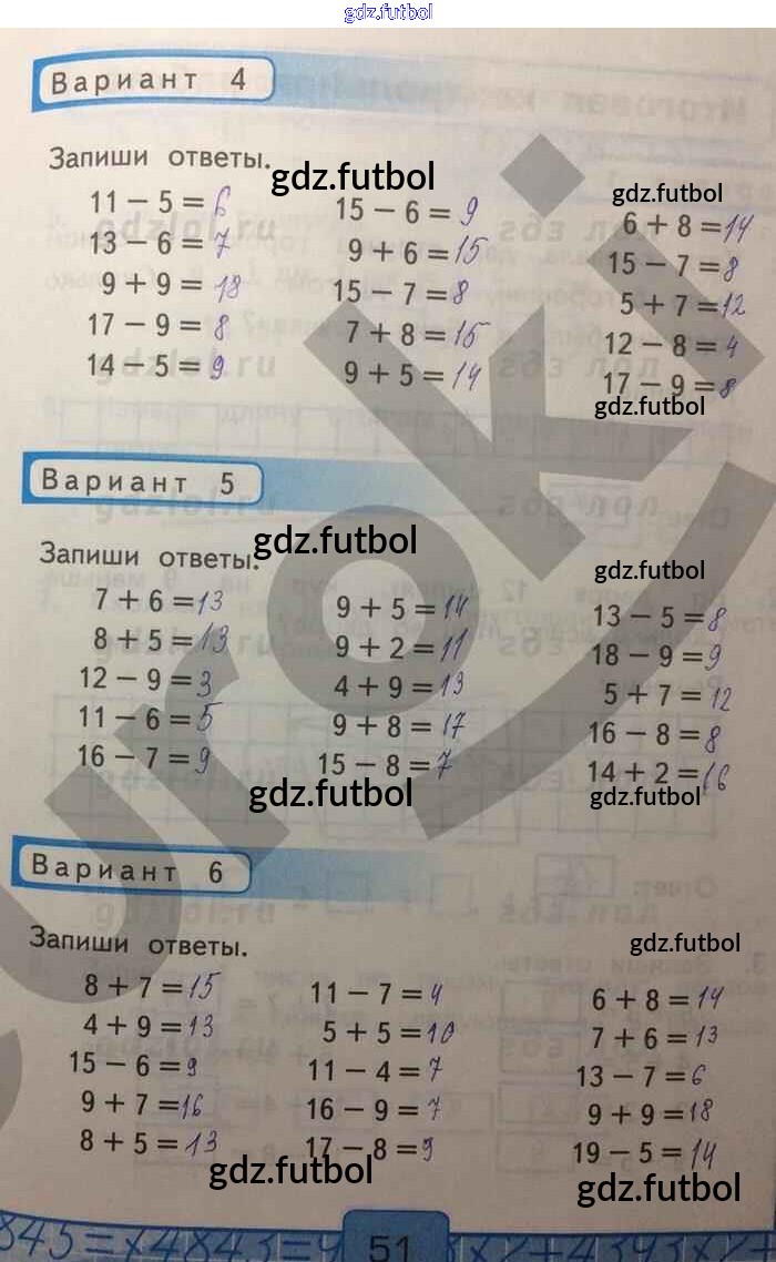 Готовые домашние задания по Математике за 1 класс Рудницкая Контрольные работы УМК 2014 ФГОС - Часть 2. Страницы 51